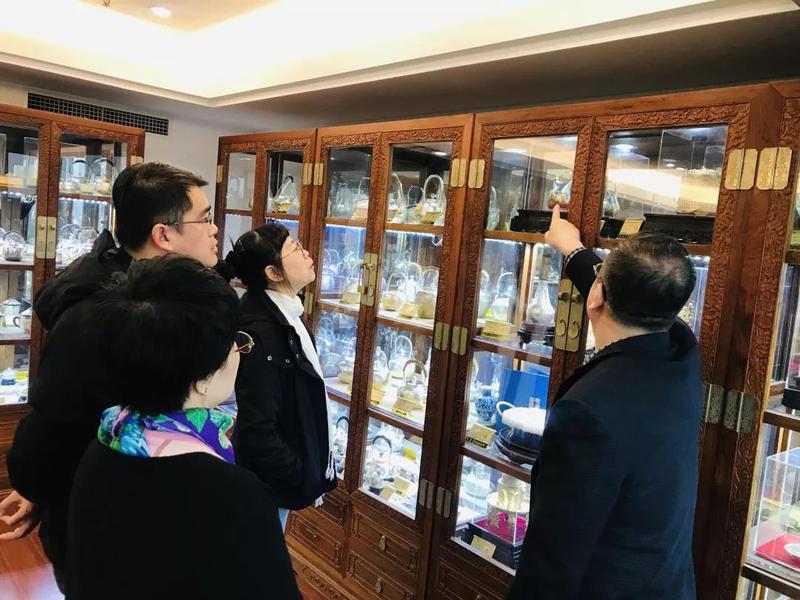 11月16日,几位校友来到唐山大厦,参观了83级物理系穆瑞田校友的企业——蟠龙工艺。他谈到自己出生于清东陵旁的马兰峪古镇,蟠龙工艺是他回馈家乡的扶贫项目,他希望作为非物质文化遗产皇家金银细工传承单位的蟠龙工艺,可以将现代设计理念与中国传统文化完美结合,使得功能与形式和谐统一。他还请校友们品尝了银壶煮水冲泡的普洱茶,水质更软,茶香气更高,茶汤更纯。