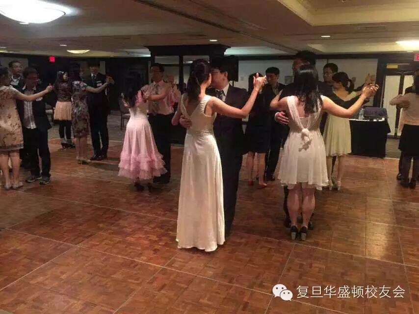 3月1日,由复旦大学华盛顿校友会主办,中国科技大学华盛顿校友会、上海交通大学华盛顿校友会、浙江大学华盛顿校友会协办,绿庭集团赞助的四校新春舞会在 华盛顿市中心威斯汀酒店如期举行。由于此次为正装舞会,同学们都精心打扮之后前来赴约。男士们统一选择了黑色西装,女士们穿着各色的连衣裙或小礼服,异常 美艳动人。 舞会开始前主办方很贴心的为同学们提供了各类小吃和美酒,如水果、蔬菜、火腿cheese拼盘、拿破仑蛋糕等;另外,还有舞蹈老师教大家华尔兹舞步,同学们热情高涨且学的有模有样。舞 会在六点正式开始,赞助商简短致辞后朱旻忆同学带来了优美的小提琴演奏;第一次的自由起舞时间促使同学们和新朋友间有了更多接触和了解,并迎来了舞会的第 一个高潮:速配舞伴环节,由十位男士抽签决定自己的舞伴后翩翩起舞。此环节后刘欣同学的一曲《万水千山总是情》把大家带回了旧时的大上海。再次自由起舞和 速配舞伴完毕后,舞蹈老师linda和for做了精彩的国标舞表演。临近尾声前的“群魔乱舞”环节将舞会推向了当晚的高潮,尤其是《小苹果》和《江南 Style》,在一位自告奋勇的同学领舞下大家都随着舞曲跳的不亦乐乎,直至DJ的舞曲播放完仍觉得不够尽兴。