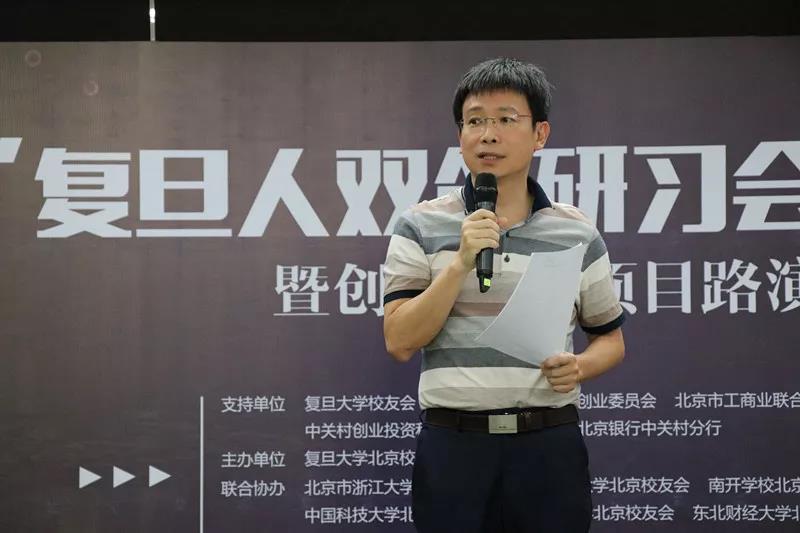 中关村创业投资和股权投资基金协会曹毅秘书长随后讲话,对复旦北京校友会此举予以充分肯定,并表示协会将继续大力支持今后的活动。同时感谢大家对中关村区域的肯定,希望大家可以在中关村有好的发展。北京银行中关村分行行长助理谢强华作为场地赞助方代表,他表示,北京银行作为本地银行,可以更好地为创业企业服务。洪泰基金创始人、洪泰资本控股董事长、南开大学北京校友会会长盛希泰专程赶来发表主题演讲,分享了自己对创业环境的观察和创业的感悟。他表示,人生处处有机遇,要勇于探索,勇于发现。北京市浙江大学校友会副会长项洪斌代表兄弟校友会讲话,积极回应复旦校友会的倡议,“一个人走得快,一群人走得远”,各兄弟校友会将携手,共建共享创业投资对接平台,服务广大创业者,尤其是高知识人群的创业,助力高校校友高质量双创。