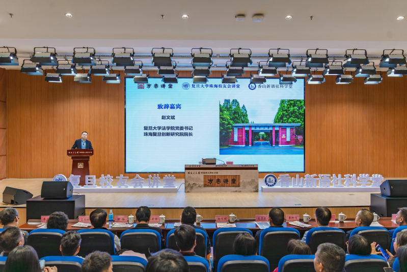 复旦大学法学院党委书记、珠海复旦创新研究院院长赵文斌发表致辞。赵文斌书记首先介绍了复旦大学及珠海复旦创新研究院的建设情况,同时表示,研究院聚焦“深化澳珠琴协同、搭建跨域合作桥梁”,通过本次讲座促进澳珠琴文化交流,让更多人深入了解澳门历史文化的现代表达,为人文湾区建设注入新活力。