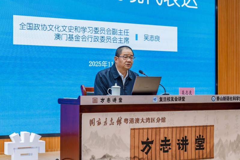 2025年11月23日下午,由复旦大学珠海校友会策划承办,“珠海复旦校友会讲堂”第一期在珠海方志馆报告厅圆满落幕。活动以“澳门历史文化的现代表达”为主题,邀请吴志良博士担任主讲嘉宾,吸引了300余名来自珠海、深圳、广州及港澳地区的复旦校友以及文化社科界、高校校友、企业代表等参与。