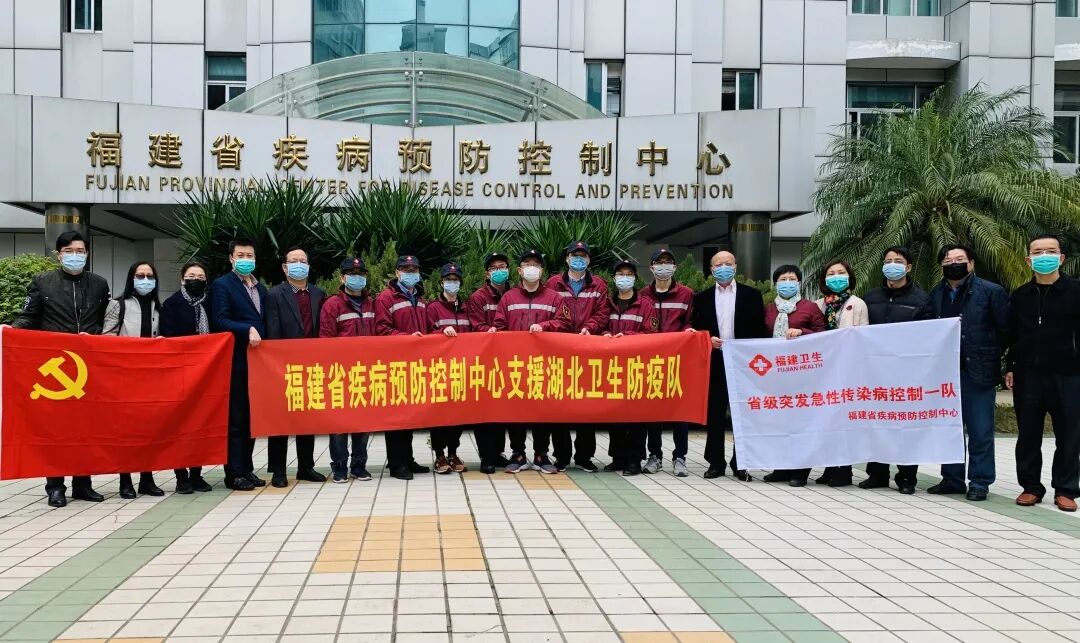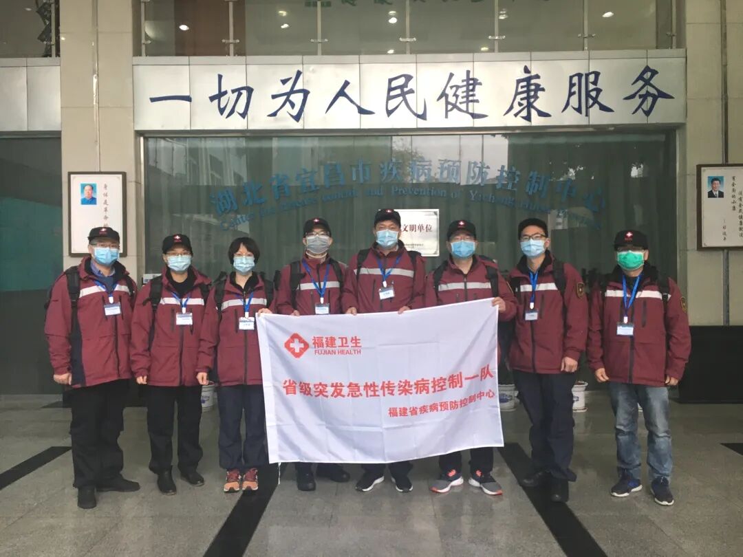 ▲2月11日,福建省疾控中心首批援助宜昌队员出征合影