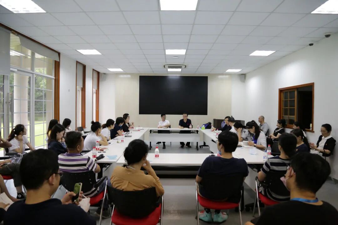 随后,张国伟与支部党员在日研中心会议室举行座谈,分享了他自己关于复旦校庆日、校歌、校园老建筑、景观等校史研究,以及《相辉,一个人的复旦叙事》成书趣事。通过考究历史,再次激发了在场党员的爱国爱校之心,激励外联人不忘初心,勇担使命做好新时期的校友工作、校董工作和基金会工作。