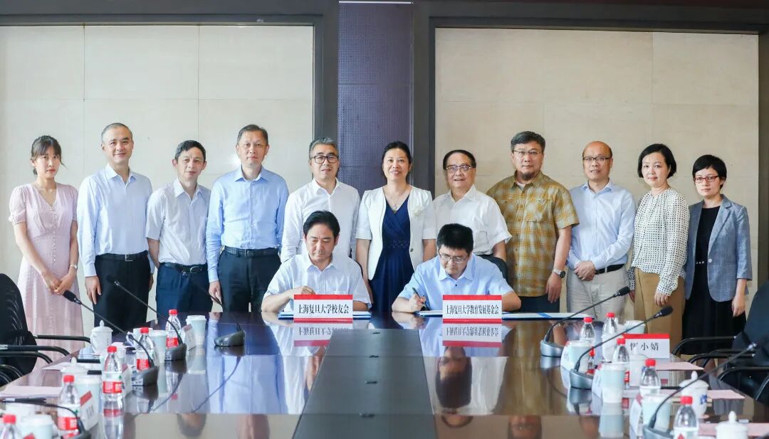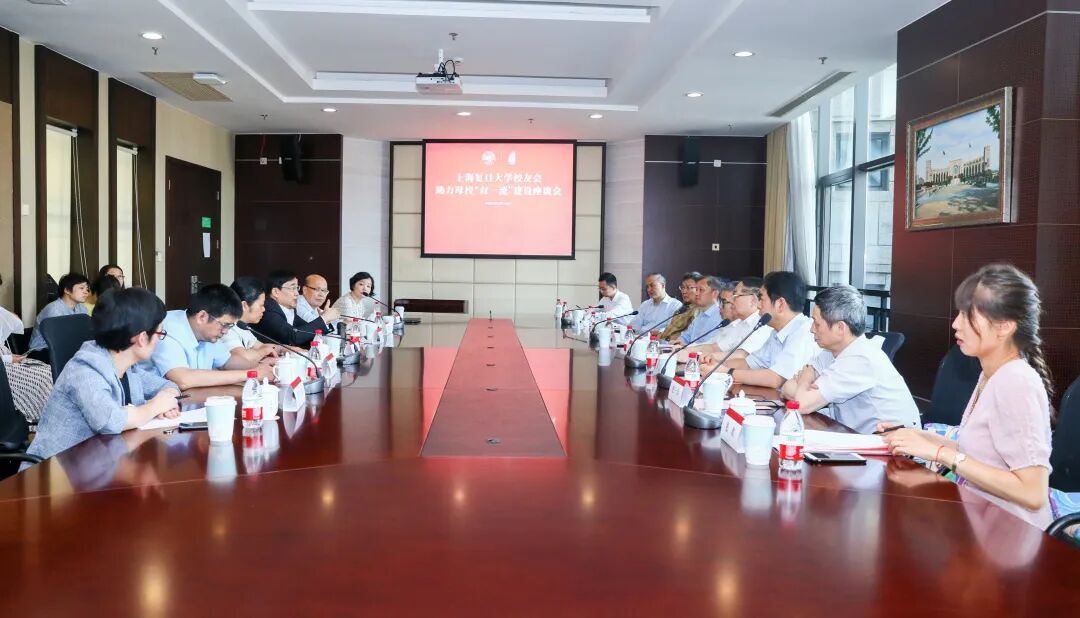 6月30日下午,上海复旦大学校友会助力学校“双一流”建设座谈会暨上海复旦大学校友会助力母校人才培养校友奖励基金捐赠签约仪式在复旦大学江湾校区举行。上海复旦大学校友会会长黎瑞刚率校友会咨委会特邀专家、生物医药医务界同学会会长俞卓伟,上海校友会咨委会联席会长金煜、副会长邵俊、华彪、史一兵、杨青等来访母校,捐资助力母校人才培养,为母校“双一流”建设建言献策。校长、复旦大学校友会会长许宁生,校党委副书记、复旦大学校友会副会长兼秘书长许征及相关部处负责人出席座谈会。