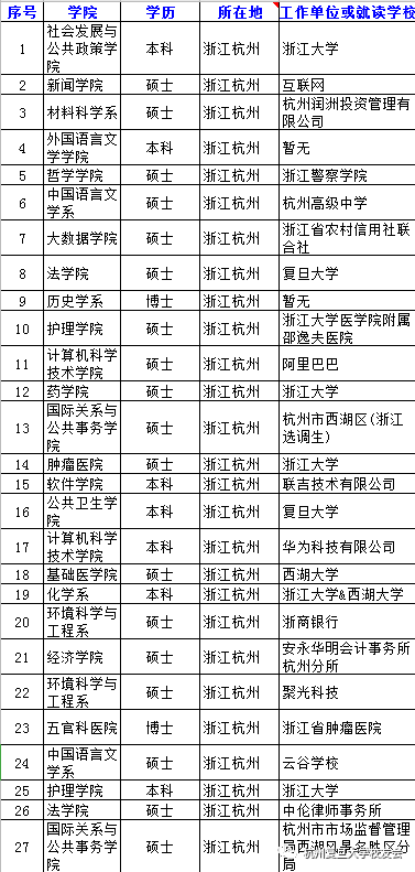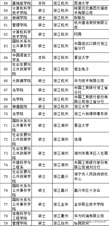 2020届赴杭毕业生去向