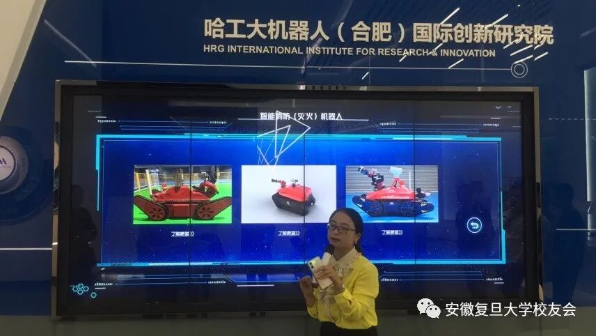 最后安徽复旦大学校友会任红云会长总结并发言;:非常感谢相关单位领导对我们校友会工作的大力支持,促成本次哈工大机器人展厅的观展成功,让大家受益匪浅。感谢各位校友、新生、家人们的支持。