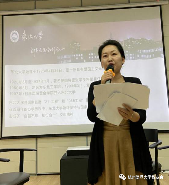 崔海燕副会长基于常年奉献法律事业的体会,表达了在用法律守住社会底线的同时也寄望用文学提升道德情怀的企盼。前杭州市图书馆馆长陆一珍校友呼吁人们在繁忙的工作之余通过阅读滋养心灵。东北大学浙江校友会孟令军副会长讲述了给孩子取名“孟响”的初衷就是希望下一代能够更好地追寻内心的渴望。