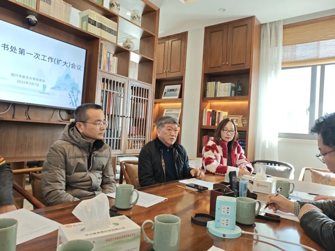 3月7日上午,绍兴市复旦大学校友会在市区龙华古寺校友会办公室召开2026年秘书处第一次工作(扩大)会议。会议围绕新一年校友会重点工作规划展开交流研讨。校友会常务副会长陈显明、秘书长马寒萍、监事长张林、顾问小组组长徐云生、顾问邵国利,校友会金融与科技委员会、医疗与健康委员会、文化遗产保护委员会、文化与传媒委员会、法律与公共服务委员会、教育与研究委员会负责人及委托代表参加。