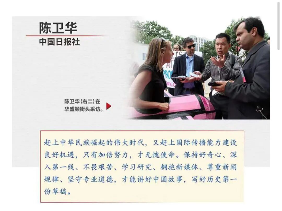 陈卫华,1987年从复旦大学新闻系毕业后进入中国日报社。在30多年的对外宣传工作中,他坚守在国际传播一线,是中国日报社优秀的驻外记者和国际时事评论员,是出色的中国故事讲述者和中国声音传播者,也是践行习近平总书记提出的“展现真实立体全面的中国”的优秀新闻工作者。陈卫华曾任中国日报社驻纽约首席记者、驻华盛顿记者站首席记者等驻外岗位, 现任中国日报欧盟分社社长。他曾获得第26届和28届中国新闻奖,入选2019年中宣部文化名家暨“四个一批”人才。