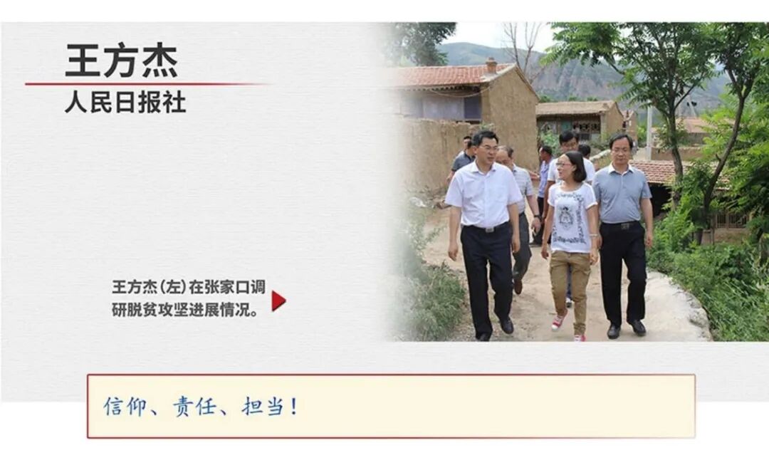 王方杰1985年从复旦大学新闻系毕业。从事新闻职业32年来,他始终坚持认真学习贯彻落实党的路线方针政策。十八大以来,在思想上、政治上、行动上坚决同以习近平同志为核心的党中央保持高度一致,有深厚的理论素养和基层经验,业务能力突出,爱岗敬业、锐意进取、作风务实,善于采写、编辑、策划重大报道,先后获中国新闻奖3次,获省部级新闻一等奖和人民日报社年度精品奖30多次,编辑、审阅各类内参稿件近万篇、数千万字,为实现人民日报内参的跨越发展作出了突出贡献。2011年入选中共中央宣传部“四个一批”人才,2012年入选全国新闻出版行业领军人才、成为享受国务院政府特殊津贴专家。
