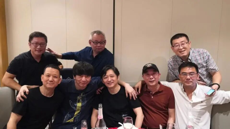 (前排左1)90级校友甘雄,(前排左二)洪兵老师,(前排左3)92级校友曹亮,(前排左四)胡军老师,(前排左5)95级校友钟鑫,(后排左一)88级校友蔡志军,(后排左2)92级校友陈震,(后排左3)96级校友孙浩元