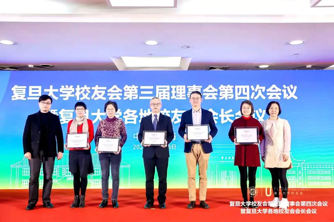 会上,学校相关部门向海内外校友组织颁发感谢状。复旦大学校友会副会长、上海医科大学校友会副会长兼秘书长夏海鸥宣读感谢状名单。杨增国、王永珍、罗英华、宋可即代表学校院系部处向来到现场的上海校友会、杭州校友会、安徽校友会、南昌校友会、瑞士校友会、台湾校友会、湖南校友会(筹)颁发感谢状。未能到现场的校友会,则通过线上展示提前收到的感谢状。