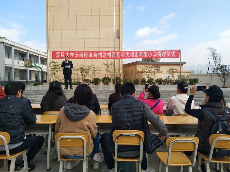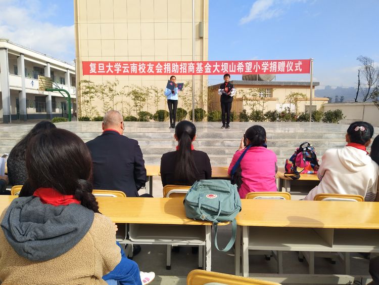 复旦大学云南校友会向招商基金大坝山小学100名学生每生捐助人民币300元善款。