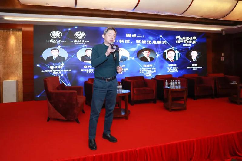 圆桌一结束后,法律界同学会会长俞卫锋做总结发言,他从蚂蚁金服、中美贸易战、反垄断等方面探讨了法律和科技关系。“我们希望通过这样的讨论,能够探讨法律和科技相结合,到底怎样可以推进人类社会的进步,同时发展的方向必须是所谓的科技向善。”从而引出了第二个圆桌主题“法律+科技,制约还是赋能?”